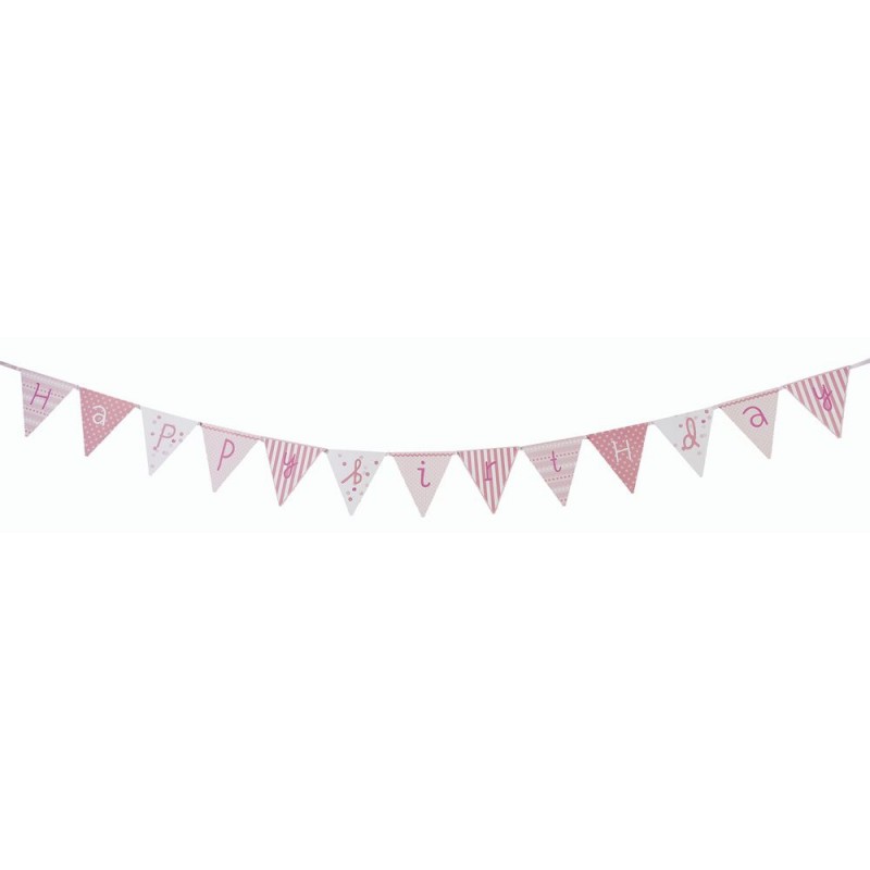 This adorable pink and white paper banner will add a touch of sweetness to every girl birthday party.