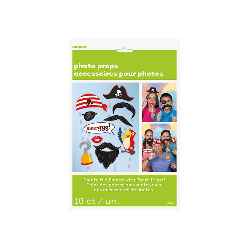 Amazing pictures and great fun to all Pirate party invitees with this photo props set. Comes with 10 card disguises.