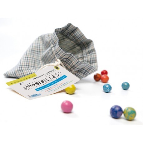 The classic marbles game in artisan version, with 16 different colors earthenware marbles in an old style cotton bag. Amazing as going home favor to invitees and also as friends birthday gift.