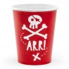 Match these Pirates Party paper cups, red and decorated with a skull and the message "Arr!", with other Pirates Party range articles to an amazing decoration for your pirates themed party!