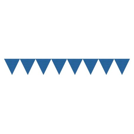 Adorable blue polka dots triangular flags paper banner. The flags are united by a cotton ribbon.