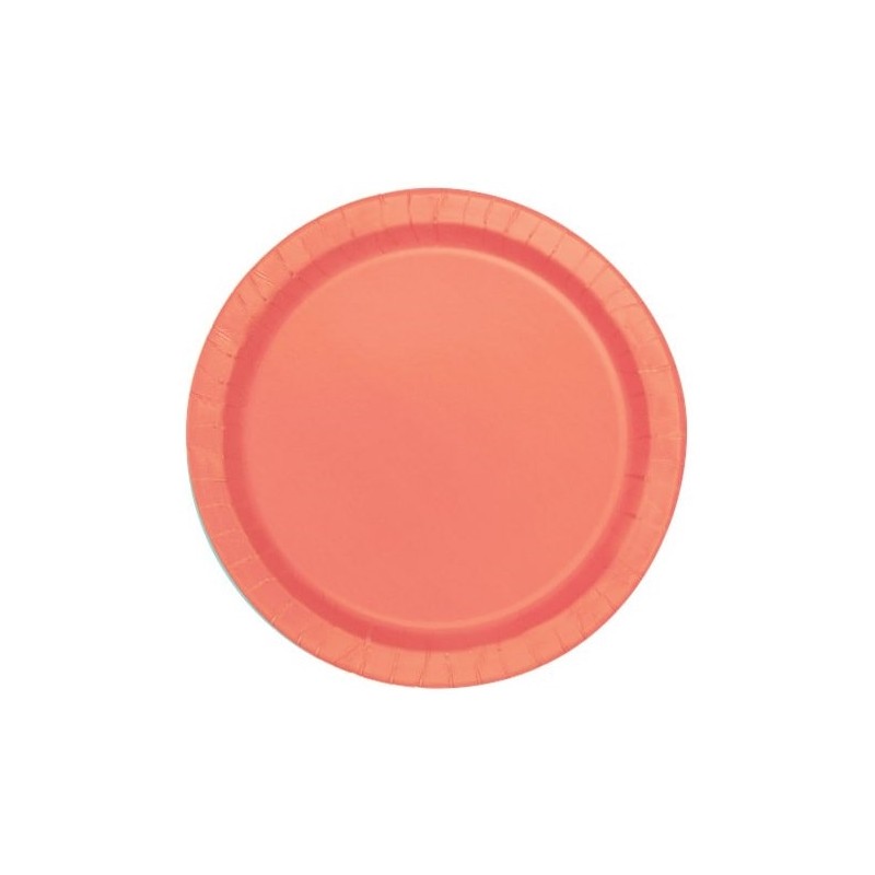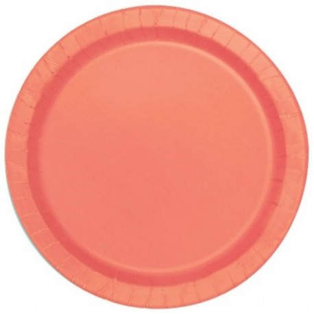 Coral paper dinner plates. These plates are perfect for a coral colored party or simply to complete your party theme decoration tableware with a coral touch. View also our many other plain colored tableware, balloons and decoration products.