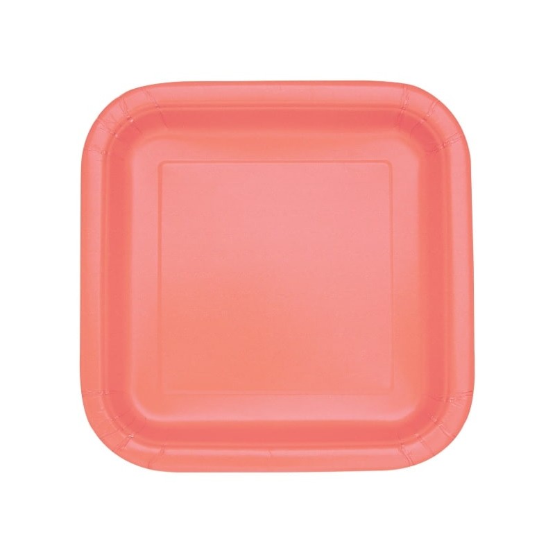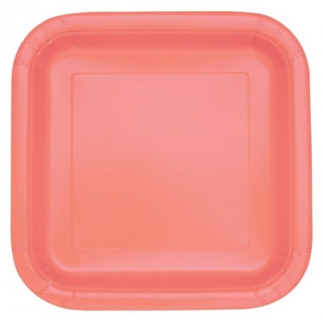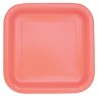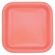 Coral paper square dessert plates. These plates are perfect for a coral colored party or simply to complete your party theme decoration tableware with a coral touch. View also our many other plain colored tableware, balloons and decoration products.