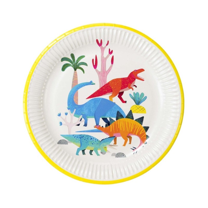 These Dinosaurs plates are made with 100% recyclable paper and are great to celebrate little ones birthday with a Dinosaurs themed party. Match with other Dino Fun range articles to create complete the decoration!