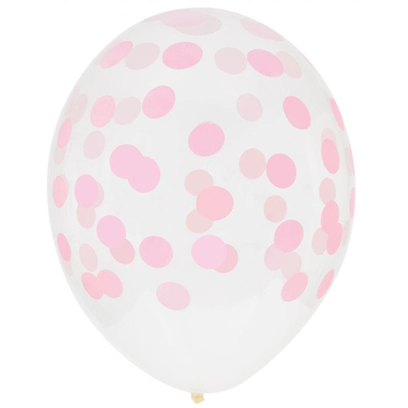 Great addition to your party, these clear printed pink confetti lattex balloons can be filled with air or helium.