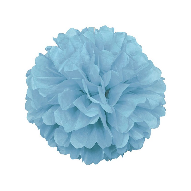 Light blue paper pon pon, to give a special touch to the party decoration. Can be placed hanging from the ceiling or placed on the table. The pon pon is sent flat and is easy to assemble, just open the sphere and separate the layers of paper.