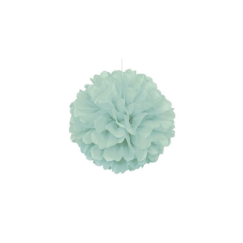 This beautiful mint tissue pom pom is great to complete your party decoration. Can be placed hanging from your ceiling or just placed on your table. Made in paper, is shipped flat and is easy to assemble, simply unfold the ball and manually separate the layers.