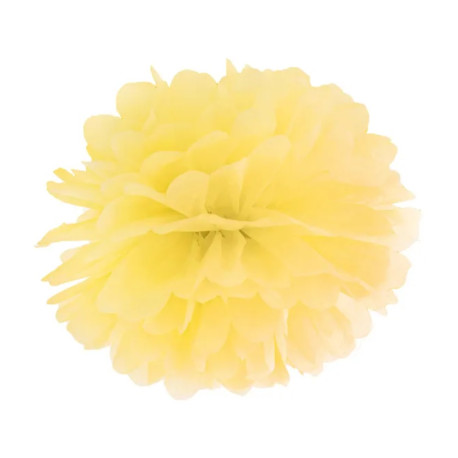 Light yellow paper pon pon, to give a special touch to the party decoration. Can be placed hanging from the ceiling or placed on the table. The pon pon is sent flat and is easy to assemble, just open the sphere and separate the layers of paper.