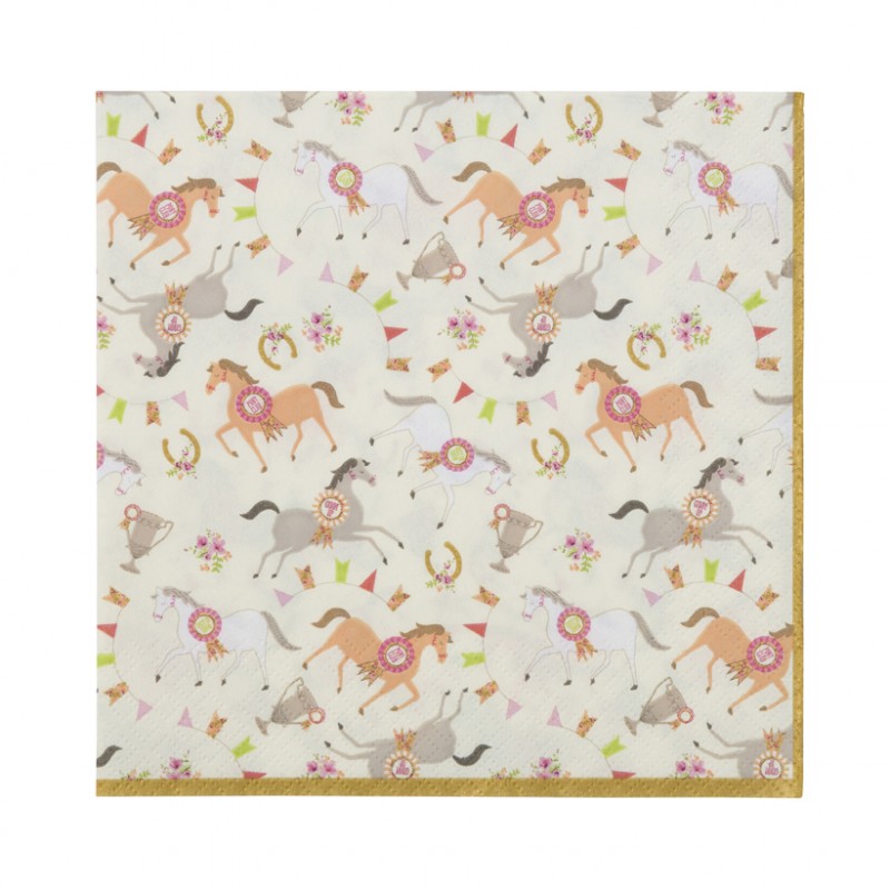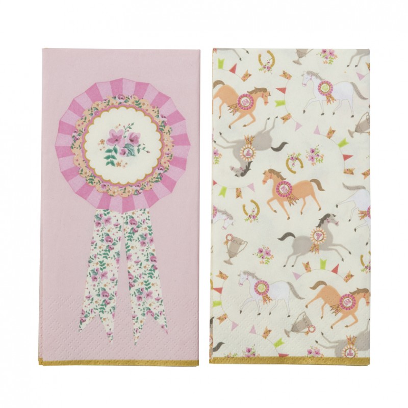 Pony Party paper napkins mixed in 2 different designs for horses themed girls birthday parties.