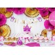 This lovely garland features gold foil letters to forming the word "Princess" and hot pink crowns in cardboard. It is the perfect addiction to princess themed party decoration.