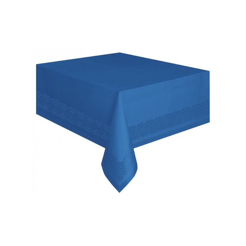 This tablecover is ideal for many occasions. Royal blue, made in absorbant paper surface and waterproof plastic in the back, preventing it to slip.