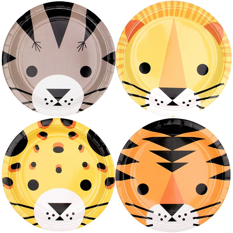 These lovely paper dessert plates featuring the face of felines come in 4 different designs and are absolutely adorable for jungle themed birthday parties!