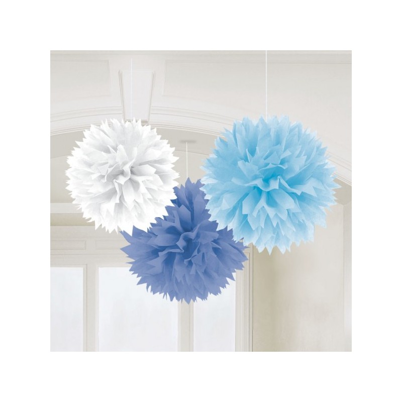This wonderful blue mix fluffy decorations set is perfect to decorate boys baby showers and bithday parties.