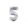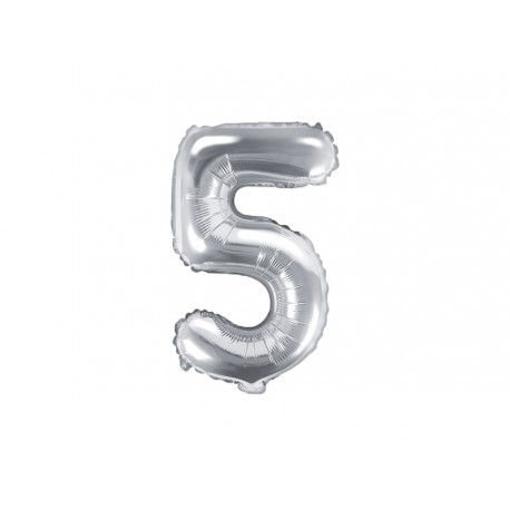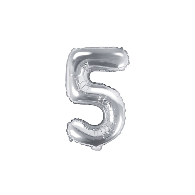 Number 5 silver foil balloon. Inflate using air (it is sent flat).