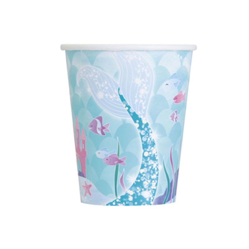These paper cups feature a wonderful sparkling Mermaid tail, while she's swimming in the deep sea. Combine with mint, lavender and pink solid color articles for a perfect decoration!