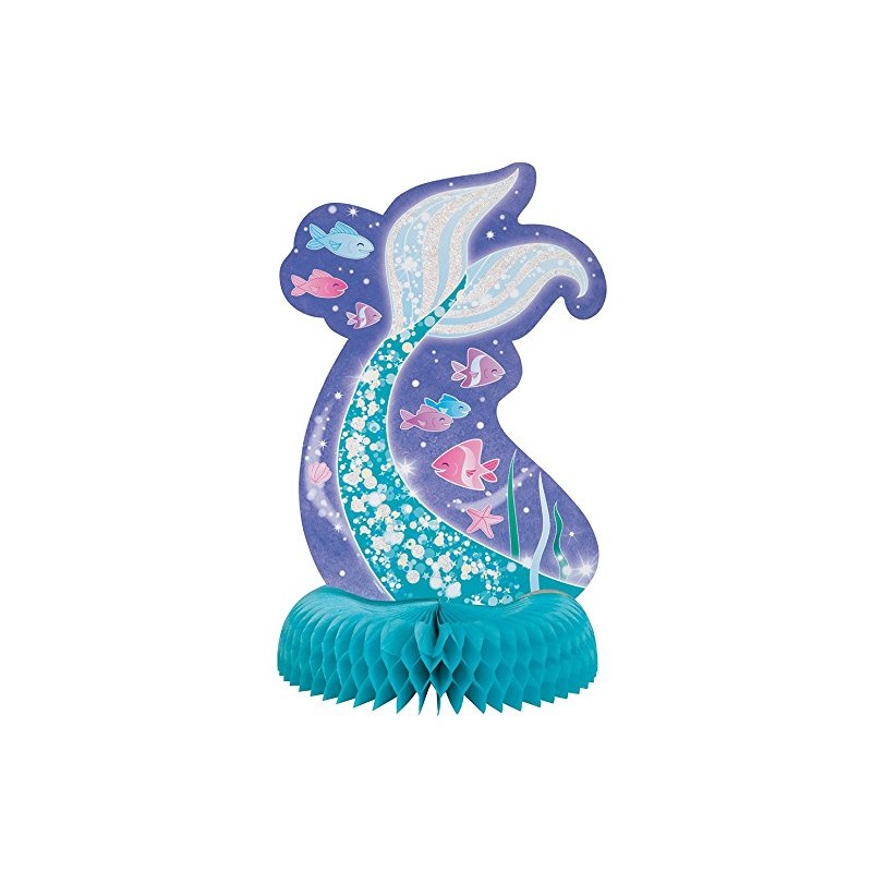 This stunning Mermaid centerpiece decoration has a honeycomb tissue base a paper cutout featuring a wonderful glittery mermaid tail. Easy to assemble, simply peel the backing off the self-adhesive pads and unfold the honeycomb base. It can also be unfolded halfway and secured flat to a wall.