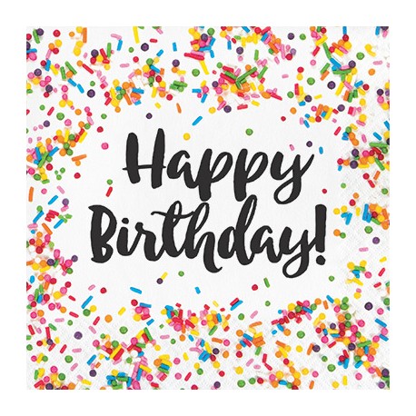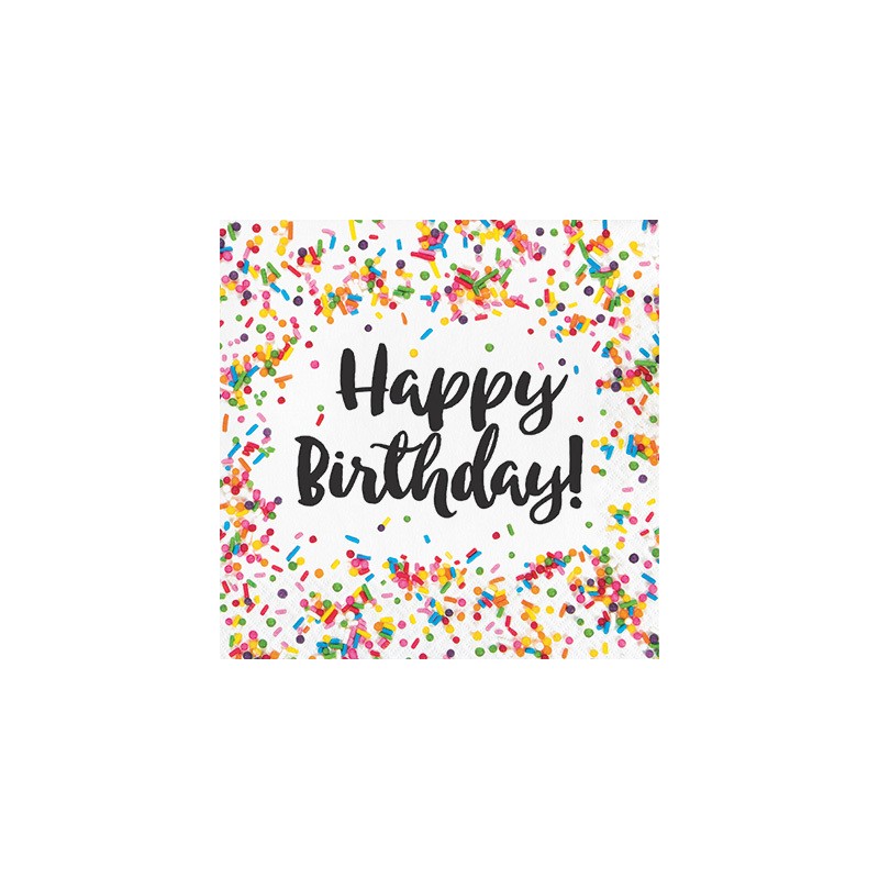 Completely delicious napkins, full of sprinkles, colors and featuring the message "Happy Birthday". Match to other Sprinkles articles for a really sweet party!