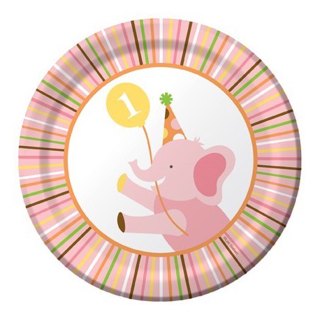 Create a sweet first birthday party for your litte girl! Combine these plates with other Sweet at One Girl products, pink and yellow cutlery, cups and balloons... her first birthday party will be unforgettable. Dimension: 18cm