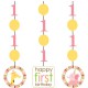 Create a sweet first birthday party for your litte girl! Combine these hanging cutouts with other Sweet at One Boy products, pink and yellow cutlery, cups and balloons... his first birthday party will be unforgettable.