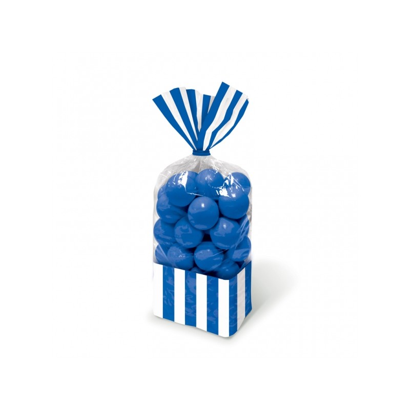 Striped Blue cellophane bags to be used as party bags on kids birthday parties. Includes twist ties for closure.