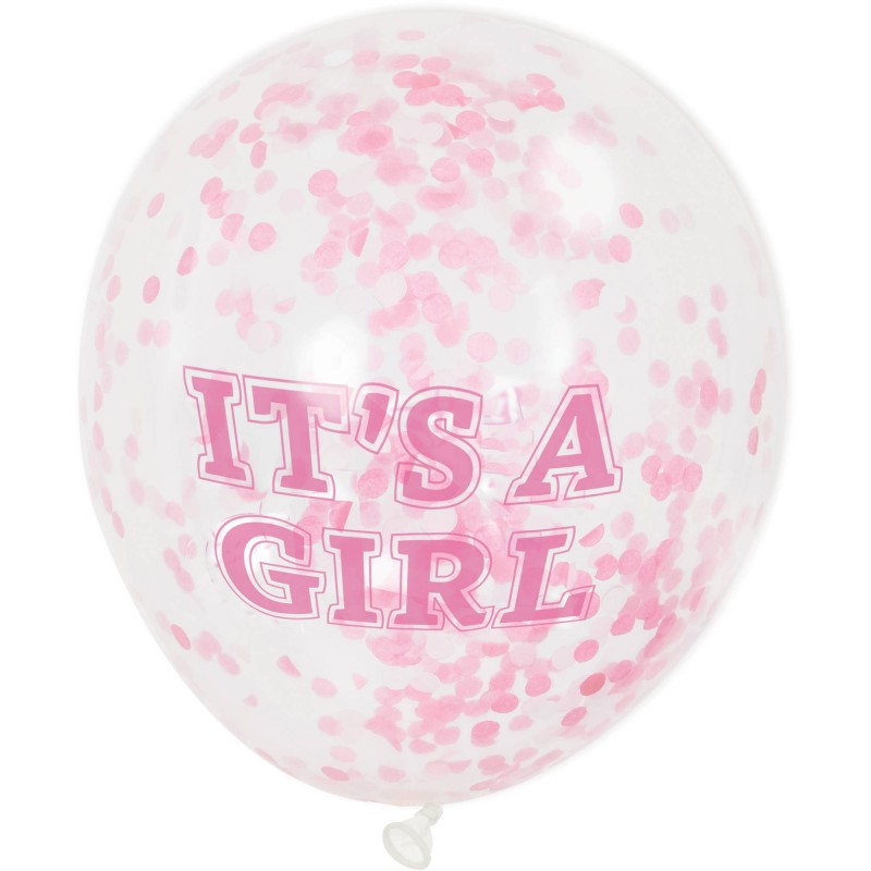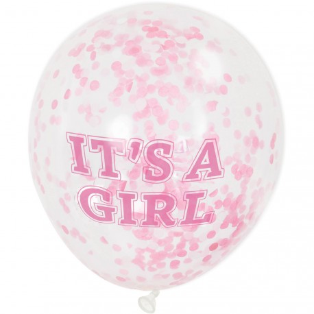 These It's a Girl Confetti Balloons are lovely to decorate girl Baby Shower parties! Before inflate it with air and/or helium, insert a bit of confetti in each balloon (using the included small funnel).