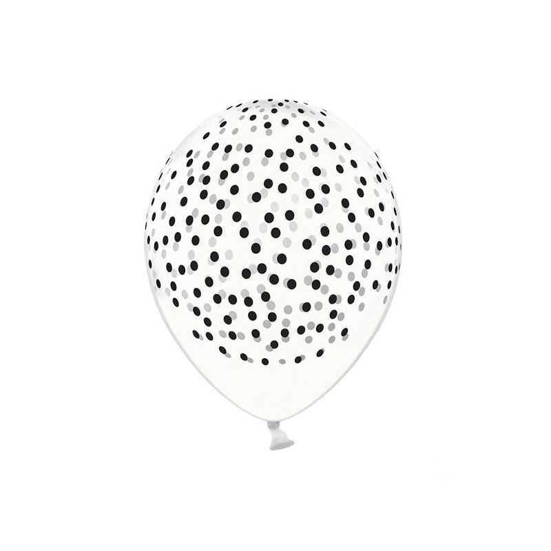 These Crystal clear with black dots latex balloons can be filled with air or helium and are great to create a balloons bouquet to decorate the party table!