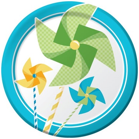 Bring the fascination of pinwheels in the wind to your little boy first birthday party with this lovely range. Match these paper dessert plates with other Turning One Boy articles and decoration in pastel blue and green colors.