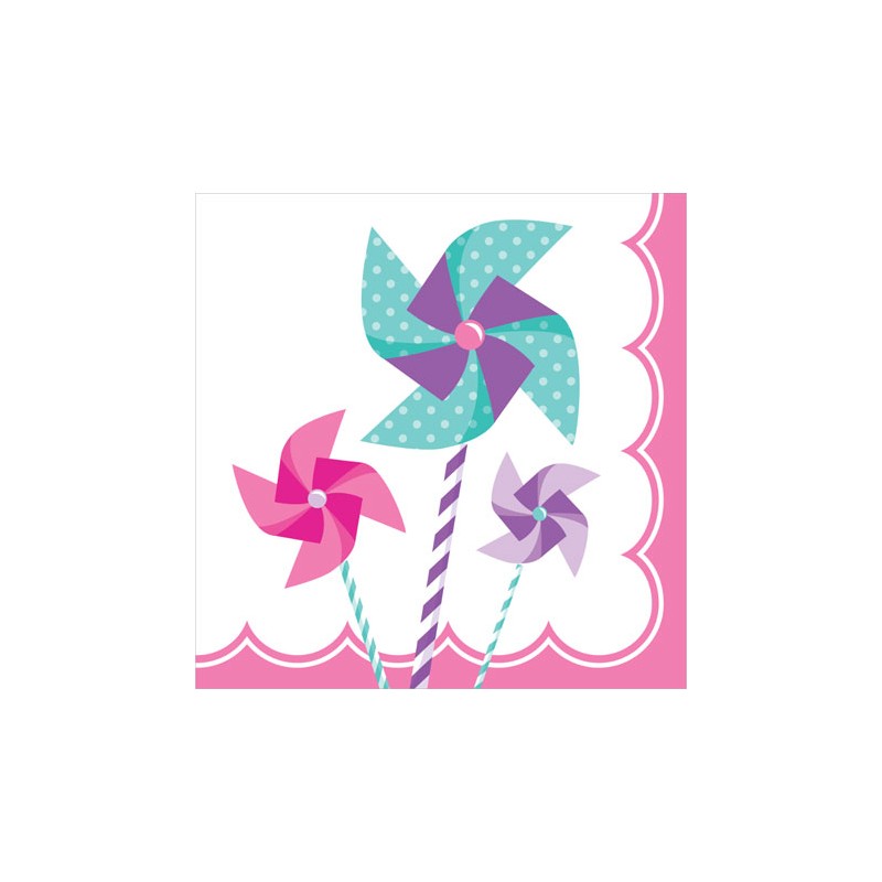 Bring the fascination of pinwheels in the wind to your little girl birthday party with this lovely range. Match these lunch napkins with other Turning One Girl articles and decoration in pink and lavender colors.