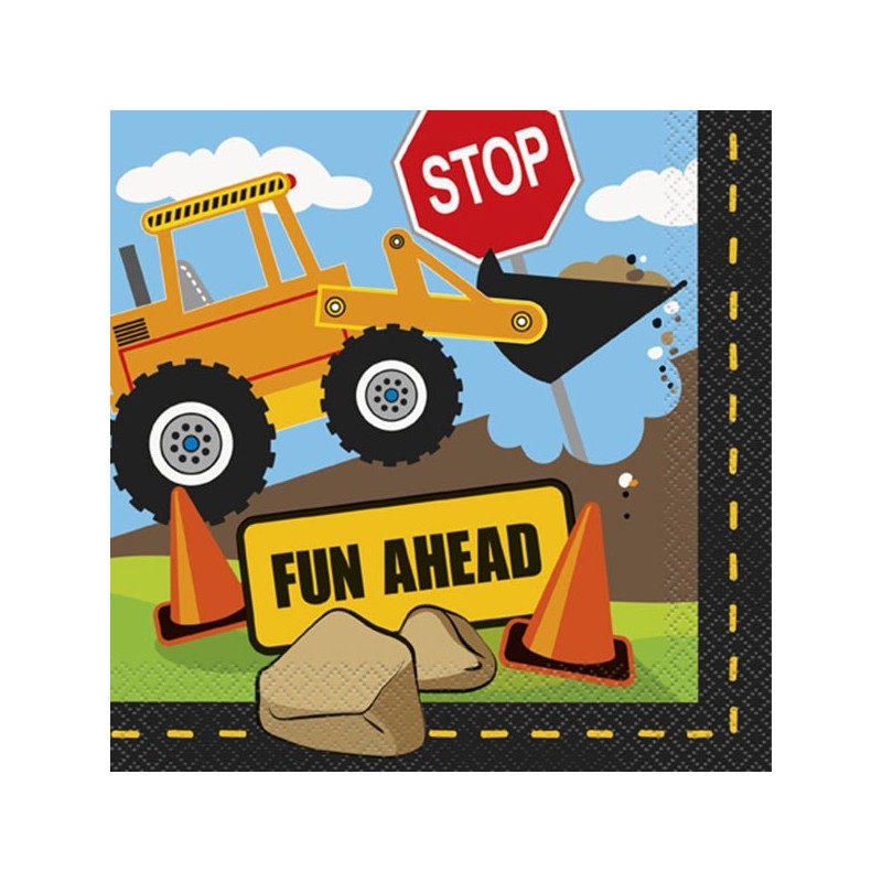 Lunch Napkins featuring an excavator working on a construction. This is the perfect theme for those boys enthusiasts of tractors, excavators and all construction vehicles! Combine with other Construction articles, add also your own boy toys for an amazing decoration!
