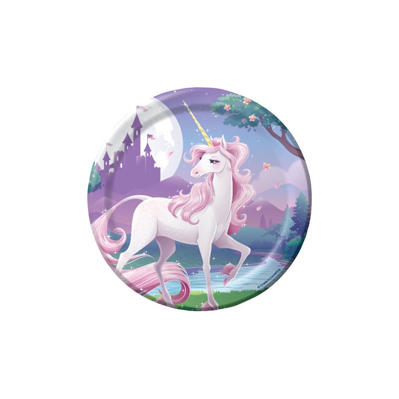 Unicorn Fantasy paper dessert plates, to bring all the magic of this fantasy winged horse to unicorn themed birthday parties.