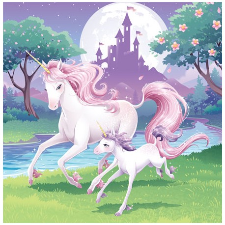 Unicorn Fantasy lunch napkins, to bring all the magic of this fantasy winged horse to unicorn themed birthday parties.