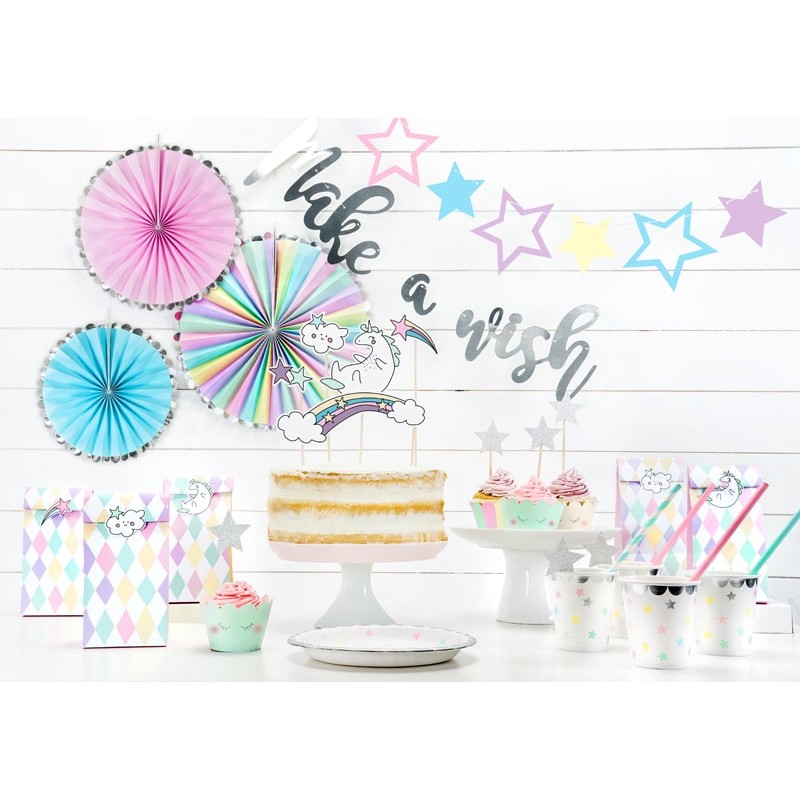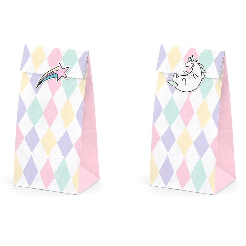 Pastel colors diamond print paper treat bags with stickers. Perfect match to "Make a Wish" party range! Complete the decoration with pastel solid colors accessories and decoration.