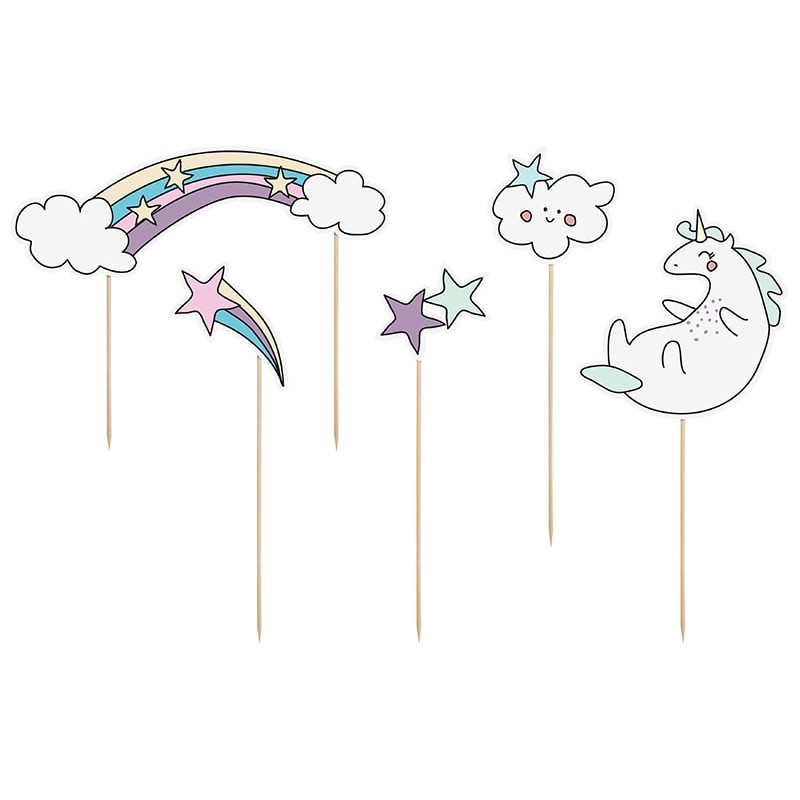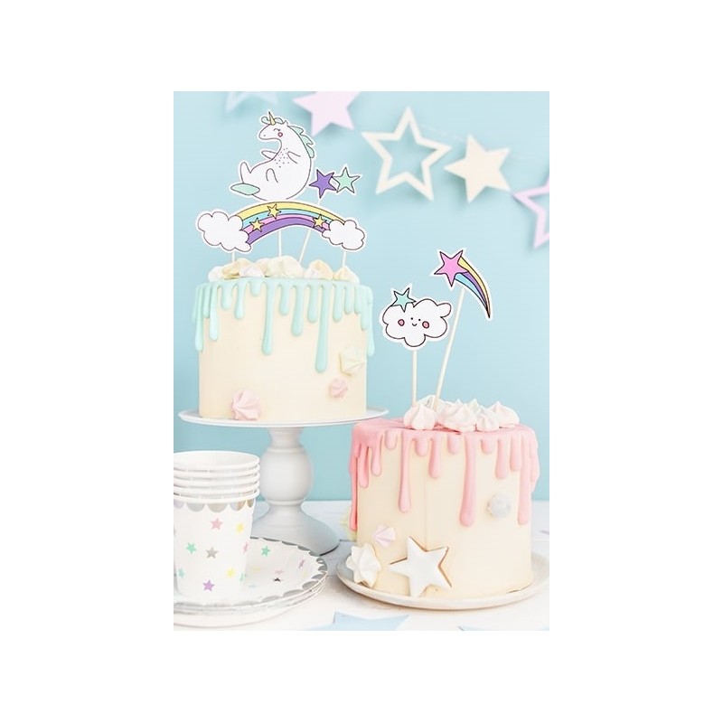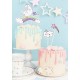 Set of 5 toppers that can be used together to decorate the cake or separately to decorate cupcakes or even the complete buffet! Topper are made in card with wooden picks. Perfect match to "Make a Wish" party range! Complete the decoration with pastel solid colors accessories and decoration.
