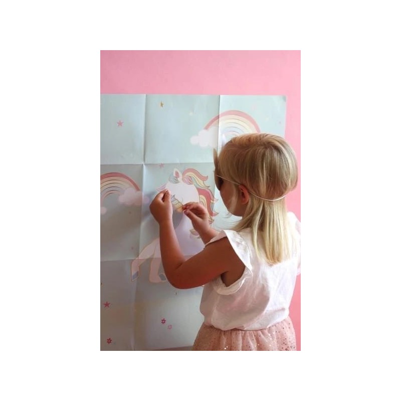 Wonderful version of the traditional kids party game, increase fun on your Unicorn Party with this Pin the Horn on the Unicorn Game. Include poster, blindfold and stickers.