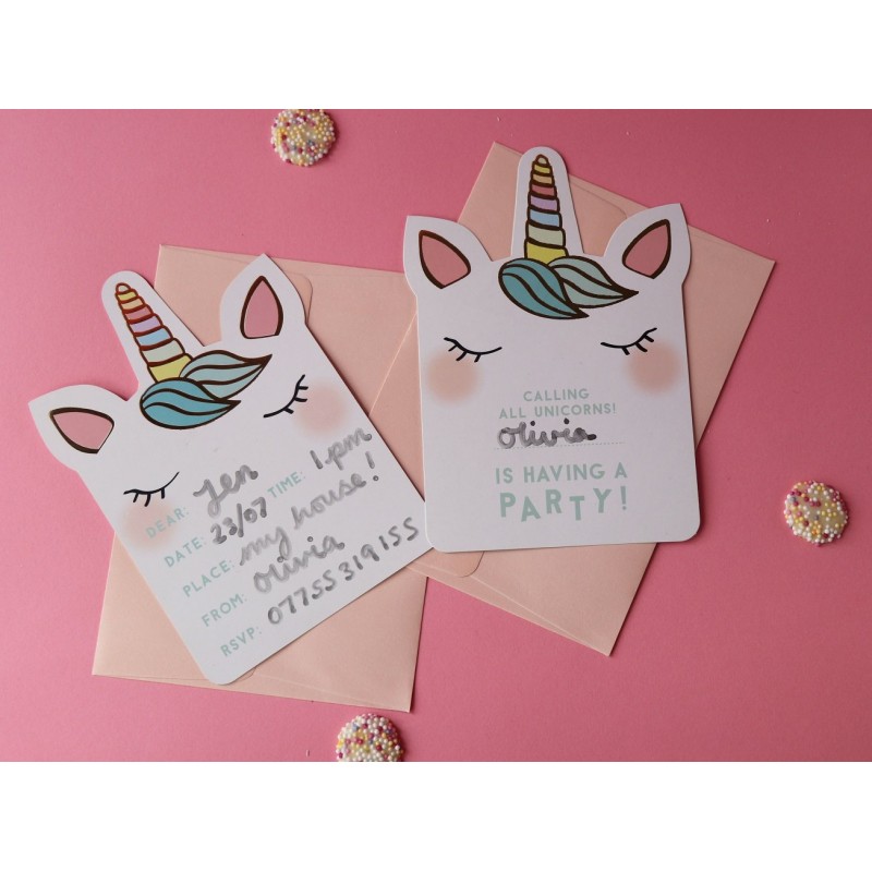 Use these wonderful Unicorn shaped party invitations to invite friends and family to your magical unicorn party!