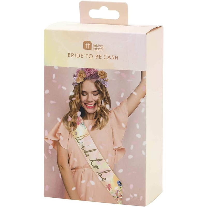 The perfect accessory for the beautiful bride to be, this paper bridal sash features the lettering 'Bride to be' in gold foil detail.