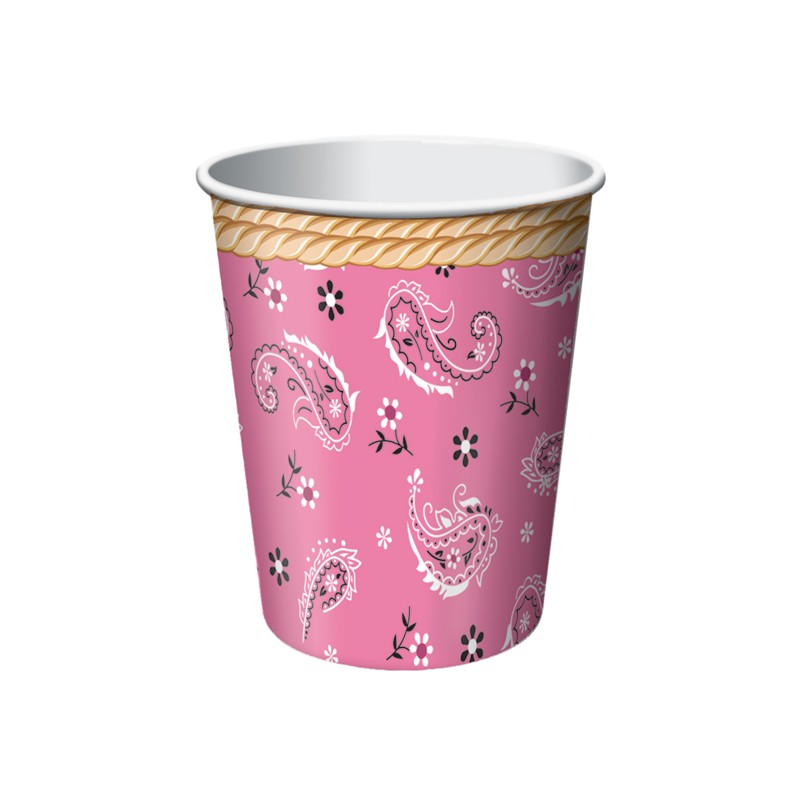 Pink Bandana paper cups for Western themed parties for girls. Combine to other Bandana articles, country accessories and decorations!