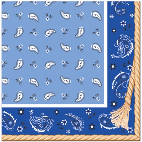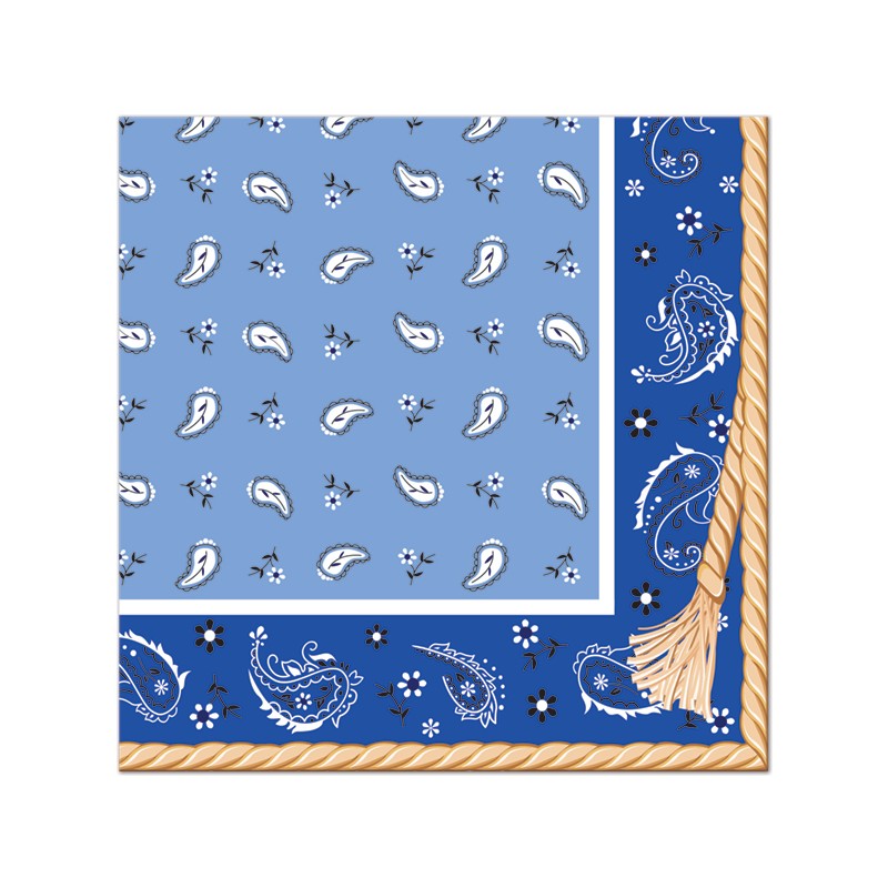 Blue Bandana paper lunch napkins for Western themed parties for boys. Combine to other Bandana articles, country accessories and decorations!