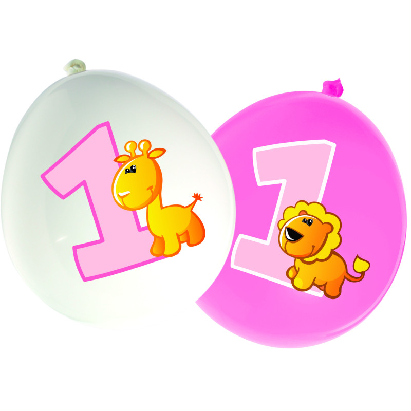 Set palloncini in lattice bianco e rosa a tema Animaletti per festa primo compleanno bimba!