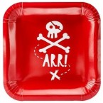 Piattini in carta del coordinato Pirati Fun. Abbinali agli altri articoli del coordinato per una decorazione stupenda! Dimensioni: 18 cm Pezzi: 8