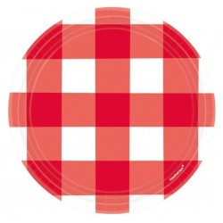 Piattini in carta a quadretti rosso e bianco, perfetti per Picnic Party! Abbinali ad altri articoli a quadretti e in tinta unita rosso e bianco. Dimensioni: 18 cm Pezzi: 8