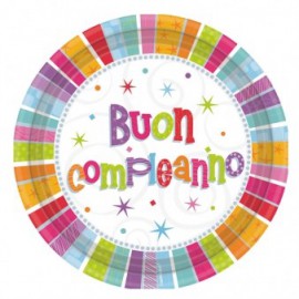 Piattini in carta del coordinato Radiant Birthday per feste compleanno. Abbina agli altri articoli del coordinato! Dimensioni: 18 cm Pezzi: 8