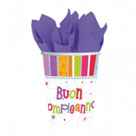 Bicchieri in carta del coordinato Radiant Birthday per feste compleanno. Abbina agli altri articoli del coordinato! Dimensioni: 266ml Pezzi: 8 NOTA: i tovaglioli non sono inclusi