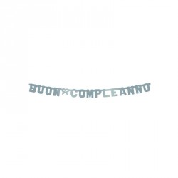 Festone con la scritta Buon Compleanno realizzato in cartoncino colore argento metallizzato, perfetto per le feste di compleanno di bambini e adulti! Pronto per l'utilizzo, con le lettere già collegate tra loro, e riutilizzabile! Dimensioni: 2,65 m e ogni lettera misura circa 15 x 13 cm Pezzi: 1