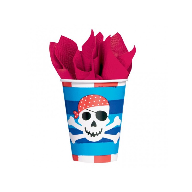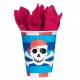 Bicchieri in carta decorati con un teschio a tema pirata del coordinato Pirates Treasure, ideale per la festa di compleanno dei piccoli pirata!
