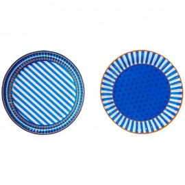 Bellissimi piatti in carta del coordinato Blue Mix in 2 modelli (righe e pois con righe). Da utilizzare come piatto oppure come vassoi per servire dolcetti e decorare il tavolo. Perfetto per le feste dei maschietti piccoli e grandi! Dimensioni: 22 cm Pezzi: 8 (4 di ogni modello)