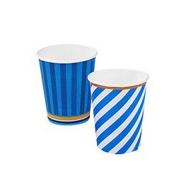 Bellissimi bicchieri in carta del coordinato Blue Mix in 2 modelli a righe. Perfetto per le feste dei maschietti piccoli e grandi! Dimensioni: 250 ml Pezzi: 8 (4 di ogni modello)