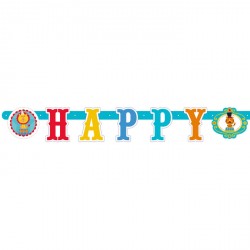 Festone Buon Compleanno del coordinato per festa compleanno a tema circo Fisher Price Circus. In cartoncino super colorato, con le lettere che compongono la scritta Happy Birthday e dei simpatici personaggi (la tigre, la scimmietta). Abbinalo agli altri articoli del coordinato Fisher Price Circus per una decorazione completa! Dimensioni: 180 x 15 cm Pezzi: 1