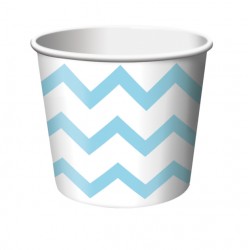 Coppette in carta con stampa chevron azzurro pastello, perfetta per servire gelato o dolcetti. Abbina agli altri articoli del coordinato tinta unita azzurro! Dimensioni: 6,5 x 8,9 cm Pezzi: 6
