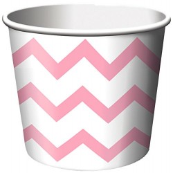 Coppette in carta con stampa chevron rosa, perfetta per servire gelato o dolcetti. Abbina agli altri articoli del coordinato tinta unita rosa! Dimensioni: 6,5 x 8,9 cm Pezzi: 6
